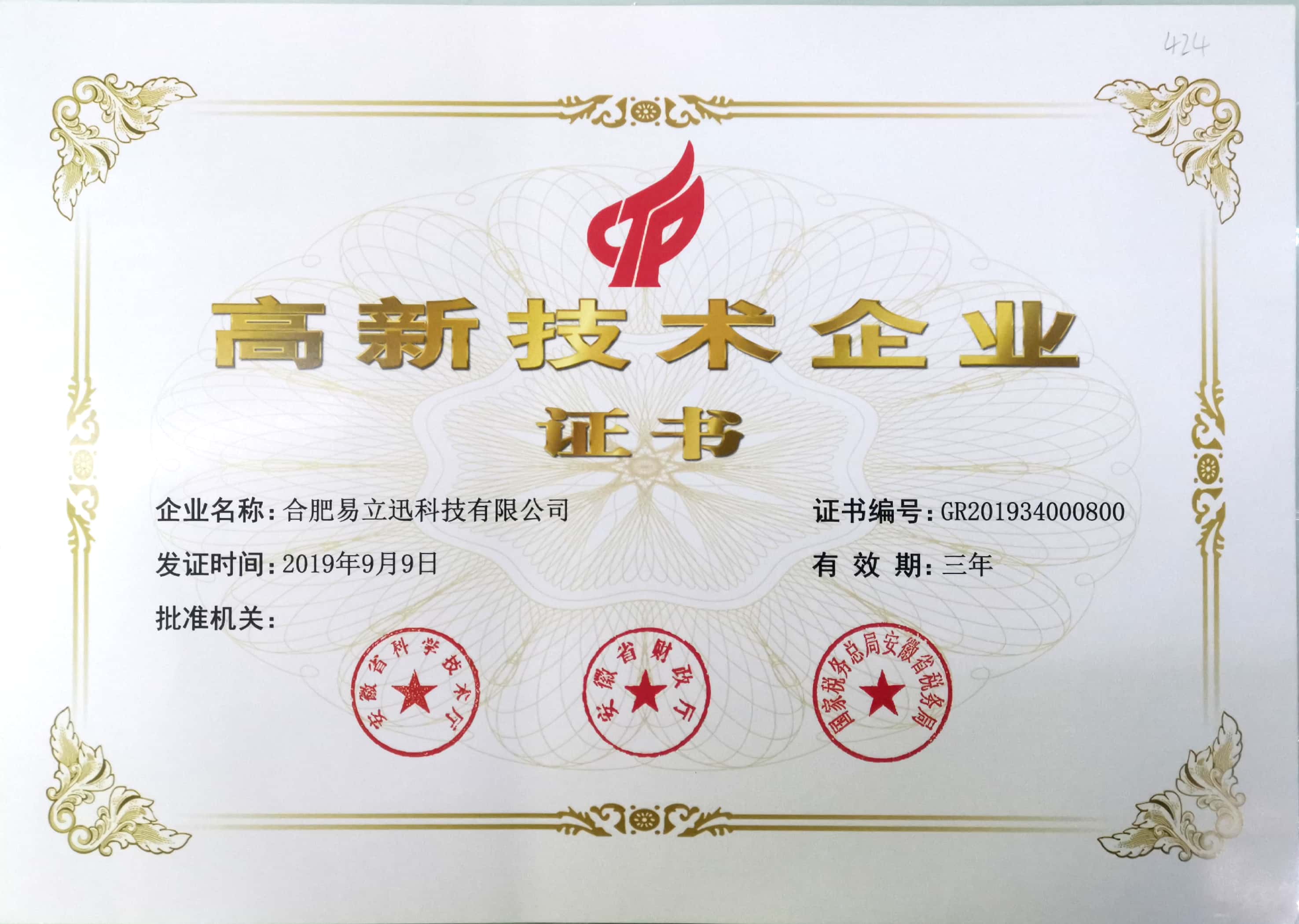合肥易立迅科技有限公司(簡稱“易立迅”)于2015年成立于合肥,首批注冊資金1000萬元人民幣。2019年通過“高新技術企業(yè)”認證。